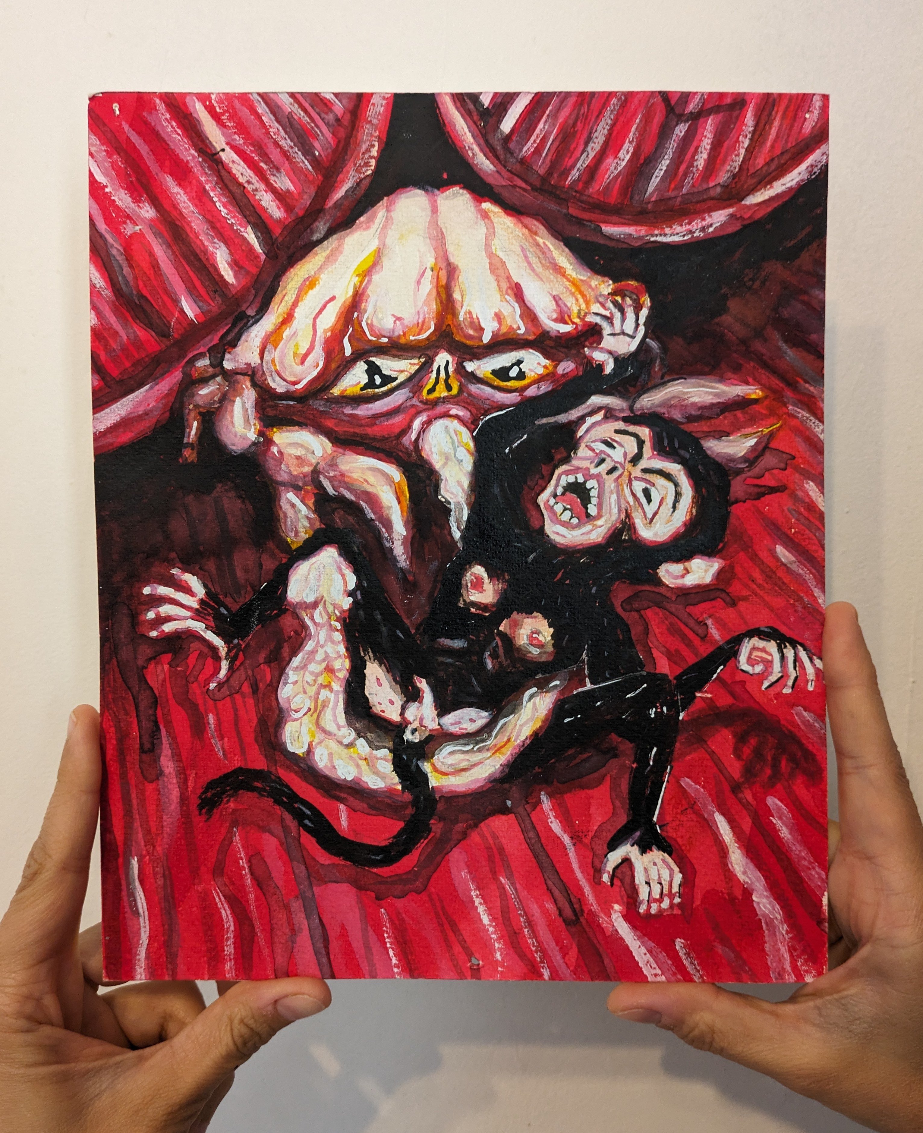 Original Illustrationtaken from the "Aminoacid Boy and the Chaos Order" graphic novel by Diego Lazzarin. 21 x 25 cm Made in Acrylics and pencil on 50% cotton cardboard.