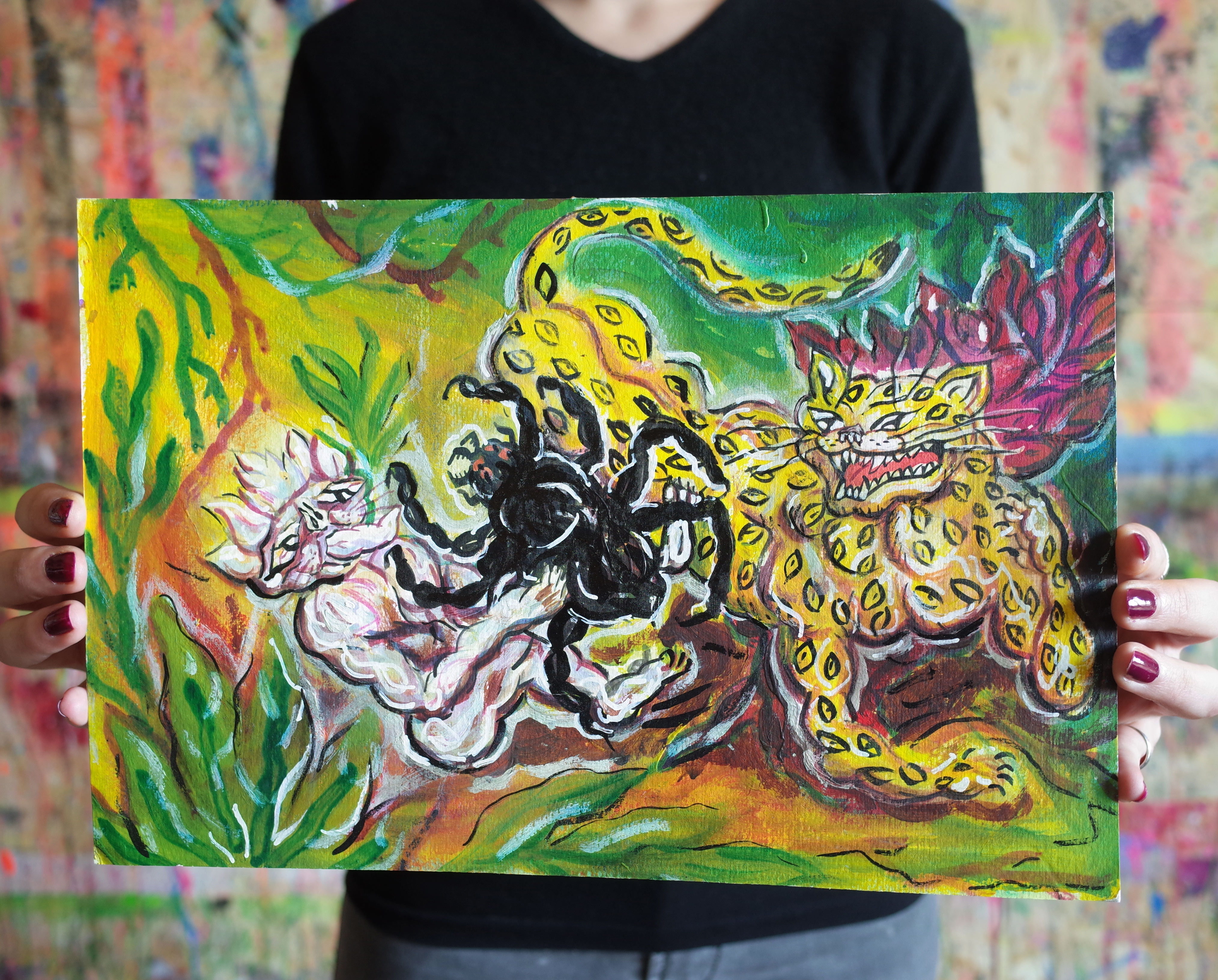 Original Illustrationtaken from the "Aminoacid Boy and the Chaos Order" graphic novel by Diego Lazzarin. 33 x 22 cm Made in Acrylics and inks on 50% cotton cardboard.