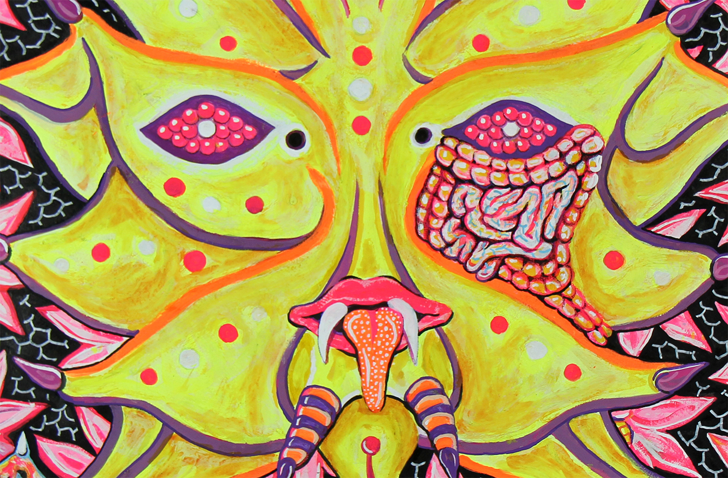 Big illustration made for the personal exhibition at Le Dernier Cri (Marseille FR 2019). 70 x 50 cm Made in Acrylics and inks on Fedrigoni cardboard.