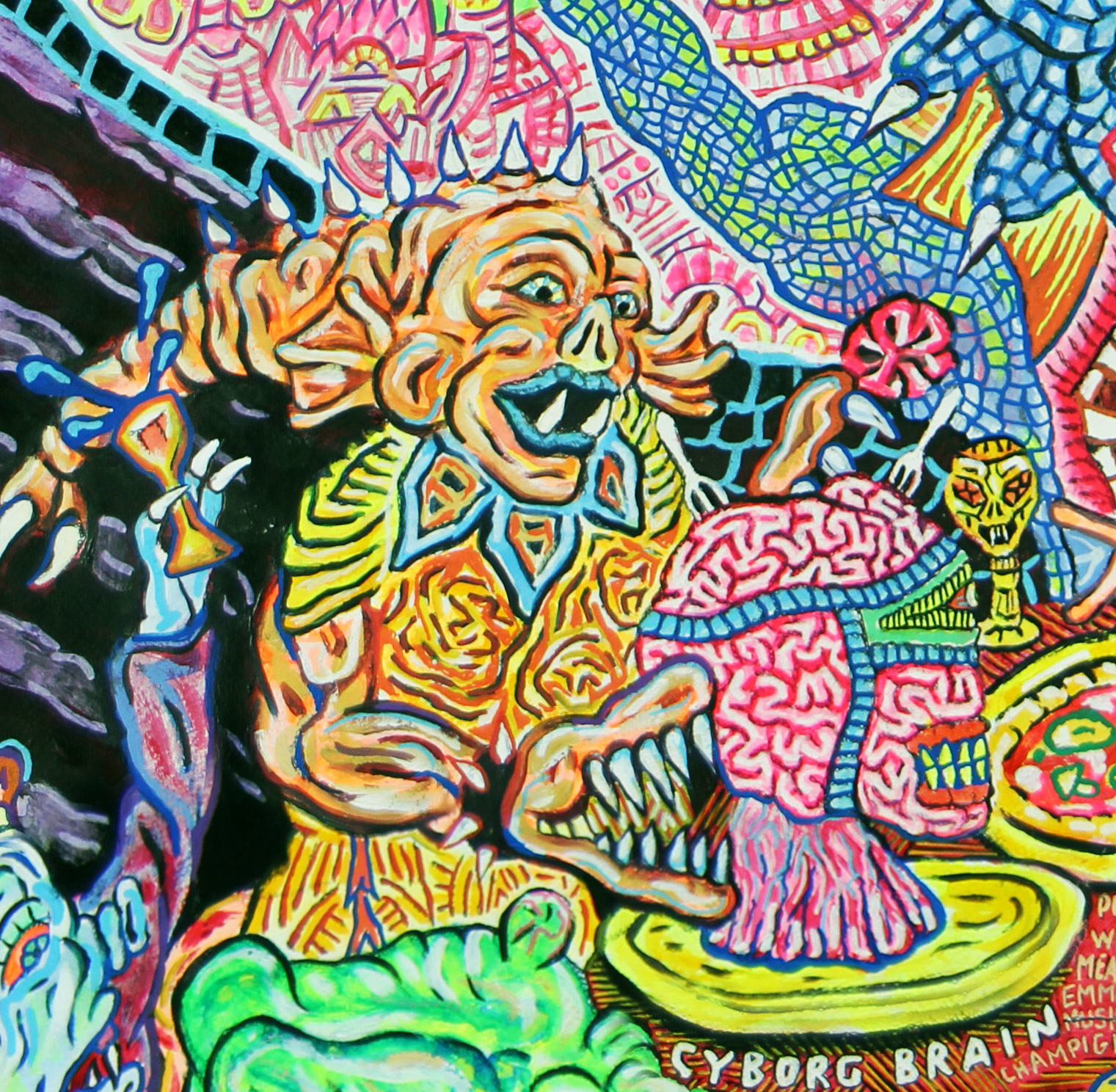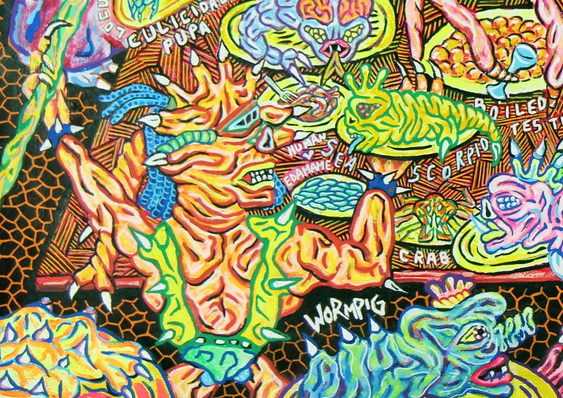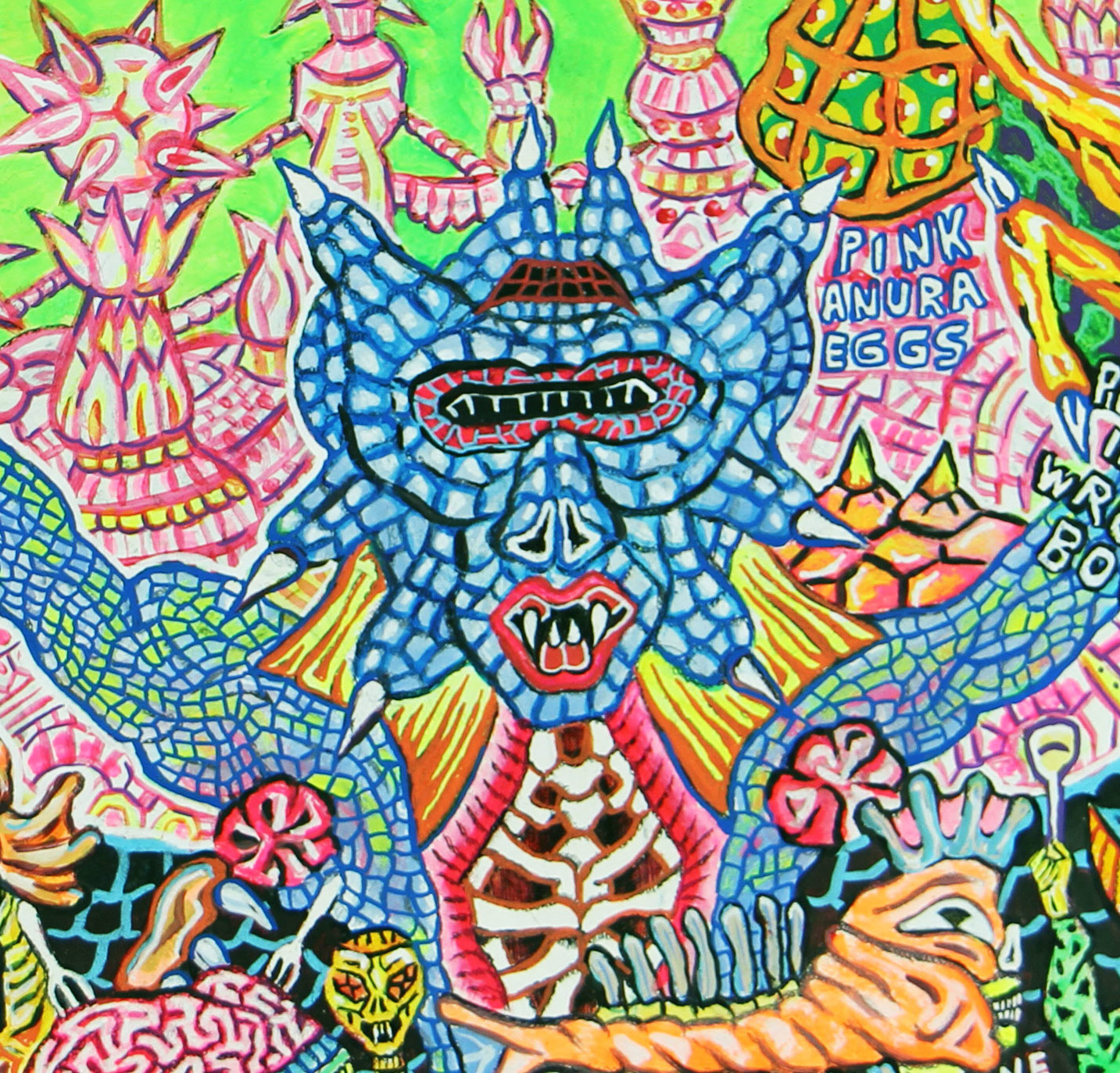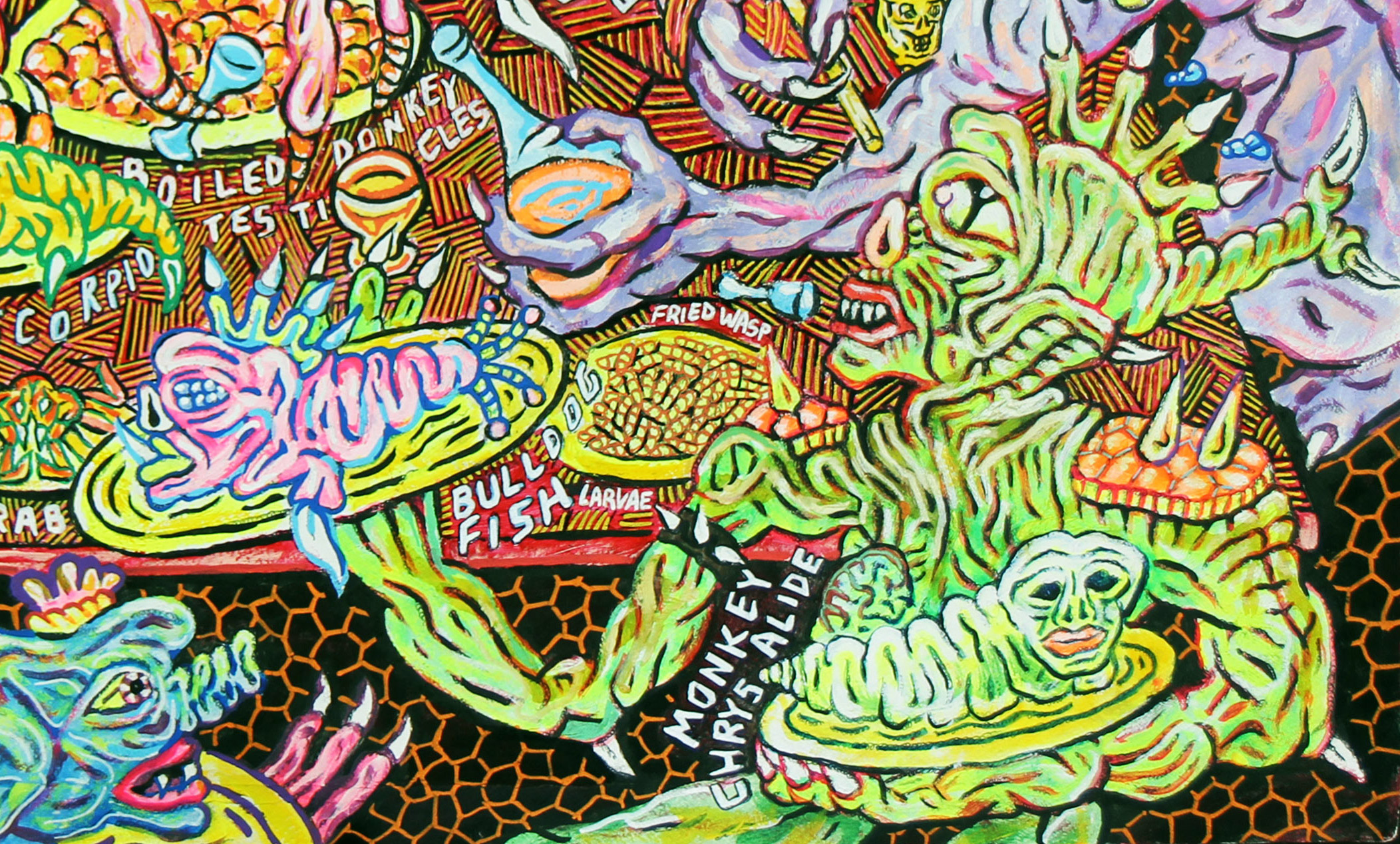Big illustration made for the personal exhibition at Le Dernier Cri (Marseille FR 2019). 100 x 70cm Made in Acrylics and inks on Fedrigoni cardboard.